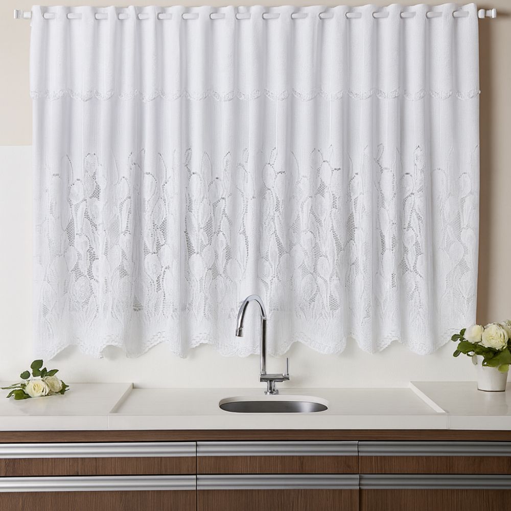 Cortina de Renda para Cozinha com Bandô Clássica Tulipinhas Interlar 280x150x30cm