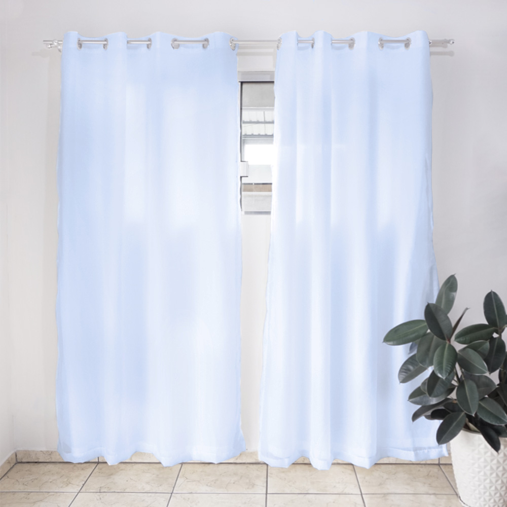 Forro e voal são costurados juntos na parte do ilhós, usando somente um varão para instalação.